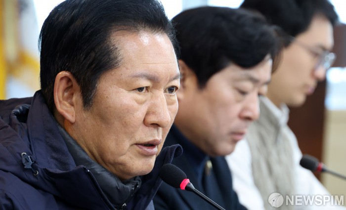 [서울=뉴스핌] 정일구 기자 = 정청래 더불어민주당 대표가 7일 오전 서울 송파구 서울시농수산식품공사에서 열린 민생 현장 최고위원회의에서 모두발언을 하고 있다. 2026.01.07 mironj19@newspim.com