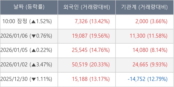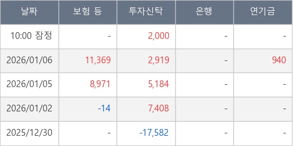 [표] 주요 기관별 순매매량 (단위 주)