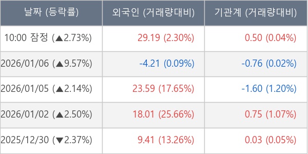[표] 주요 기관별 순매매량 (단위 만주)