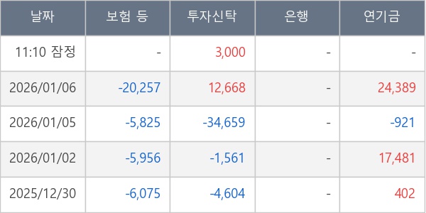 ※ 사모펀드 등 일부 기관의 순매매량은 표시되지 않음