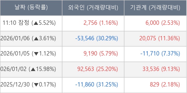 [장중수급포착] 에치에프알, 외국인/기관 동시 순매수… 주가 +5.52%