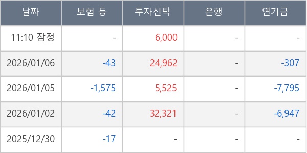 [표] 주요 기관별 순매매량 (단위 주)