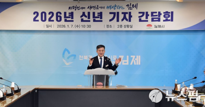 [김제=뉴스핌] 이백수 기자 = 정성주 김제시장은 7일 기자회견을 열고 2026년 시정 슬로건을 '지평선 너머 새만금까지, 비상하는 김제'로 제시하며 김제의 다음 10년을 준비하는 8대 핵심 시책을 공개했다.