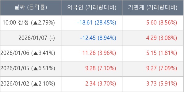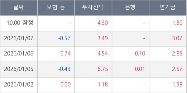 [표] 주요 기관별 순매매량 (단위 만주)