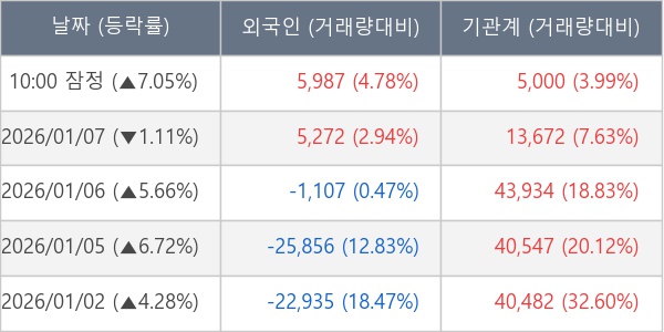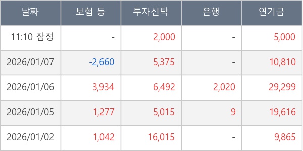 [표] 주요 기관별 순매매량 (단위 주)