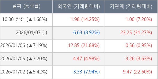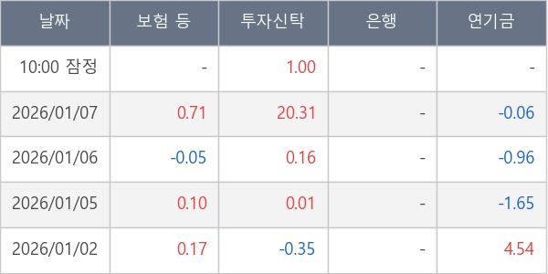 [표] 주요 기관별 순매매량 (단위 만주)