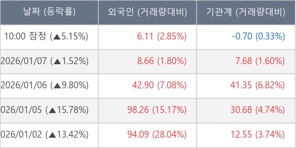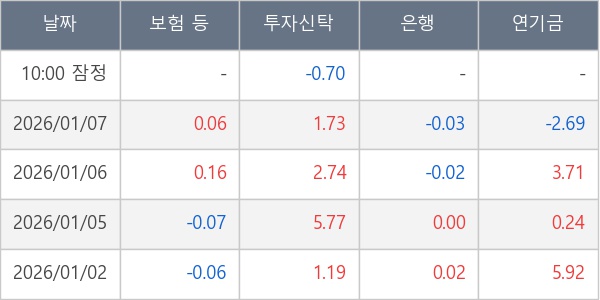 [표] 주요 기관별 순매매량 (단위 만주)