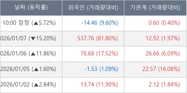 [표] 주요 기관별 순매매량 (단위 만주)