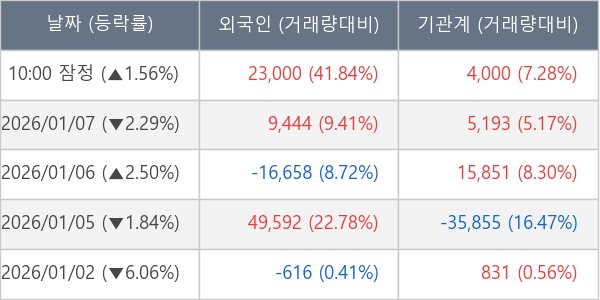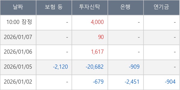 [표] 주요 기관별 순매매량 (단위 주)