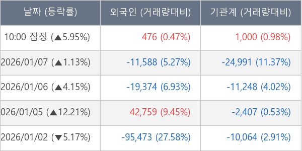 [표] 외국인ㆍ기관 순매매량 (단위 주)