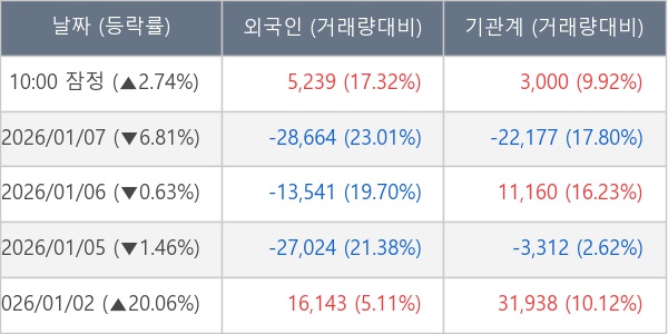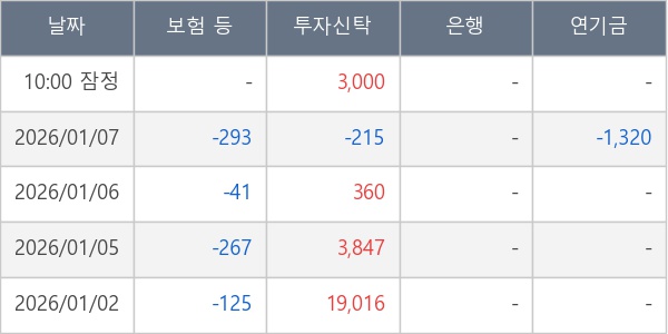 [표] 주요 기관별 순매매량 (단위 주)