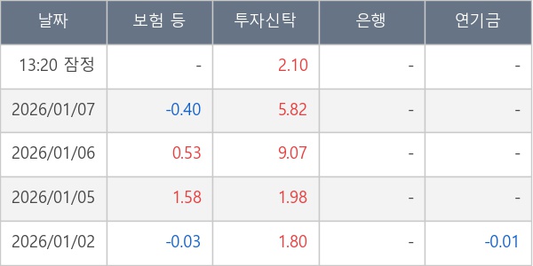 [표] 주요 기관별 순매매량 (단위 만주)