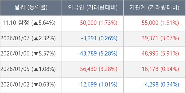 [표] 주요 기관별 순매매량 (단위 주)