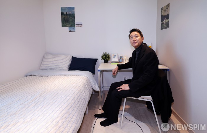 [서울=뉴스핌] 양윤모 기자 = 오세훈 서울시장이 8일 오전 기업형 민간임대주택인 서울 마포구 '맹그로브 신촌'을 방문해 1인실을 점검하고 있다. [공동취재] 2026.01.08 yym58@newspim.com
