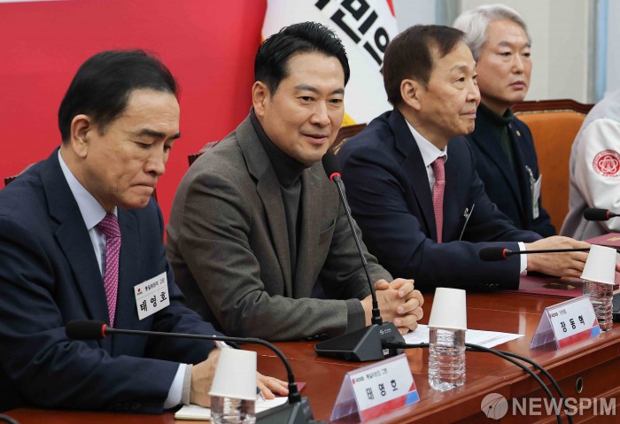 [서울=뉴스핌] 윤창빈 기자 = 장동혁 국민의힘 대표가 8일 서울 여의도 국회에서 열린 통일위원회 제1차 전체회의에서 모두발언을 하고 있다. 2026.01.08 pangbin@newspim.com