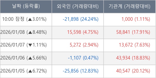 [표] 주요 기관별 순매매량 (단위 주)