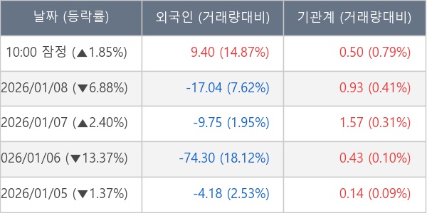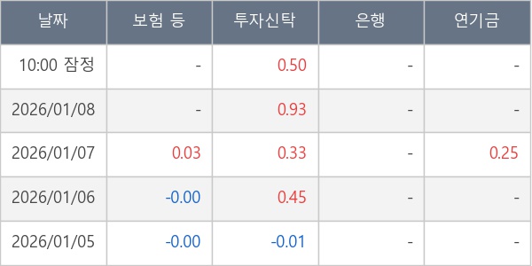 [표] 주요 기관별 순매매량 (단위 만주)