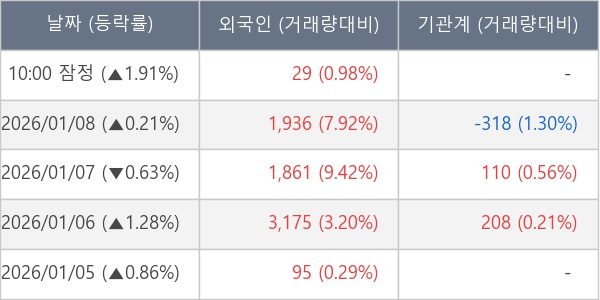 [표] 외국인ㆍ기관 순매매량 (단위 주)
