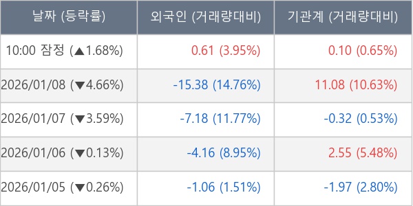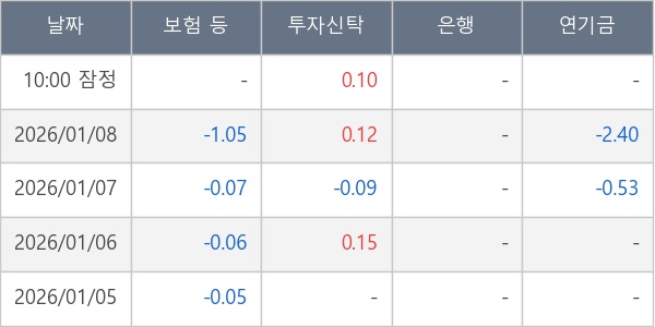 [표] 주요 기관별 순매매량 (단위 만주)
