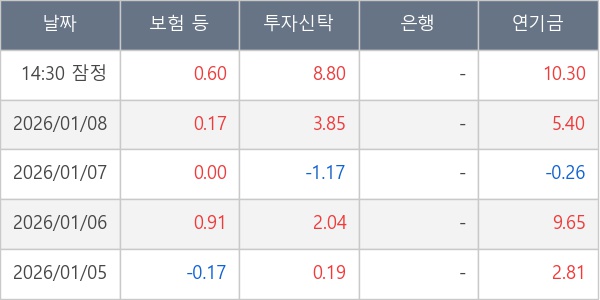 [표] 주요 기관별 순매매량 (단위 만주)