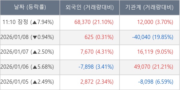[장중수급포착] 동성화인텍, 외국인/기관 동시 순매수… 주가 +7.94%