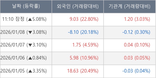※ 사모펀드 등 일부 기관의 순매매량은 표시되지 않음