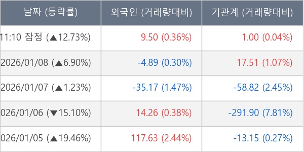 [장중수급포착] 대한광통신, 외국인/기관 동시 순매수… 주가 +12.73%