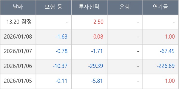 [표] 주요 기관별 순매매량 (단위 만주)