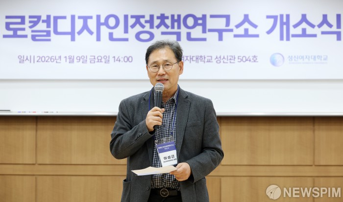 [서울=뉴스핌] 정일구 기자 = 이성근 성신여자대학교 총장이 9일 오후 서울 성북구 성신여대 성신관에서 열린 로컬디자인정책연구소 개소식에서 환영사를 하고 있다. 2026.01.09 mironj19@newspim.com