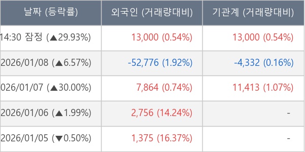 [장중수급포착] 알멕, 외국인/기관 동시 순매수… 주가 +29.93%