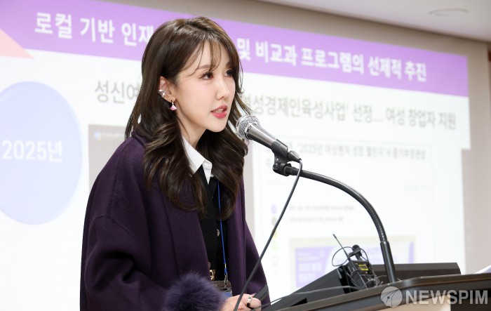 [서울=뉴스핌] 정일구 기자 = 채지민 성신여자대학교 교수가 9일 오후 서울 성북구 성신여대 성신관에서 열린 로컬디자인정책연구소 개소식에서 연구소 비전 및 운영 방향을 발표하고 있다. 2026.01.09 mironj19@newspim.com