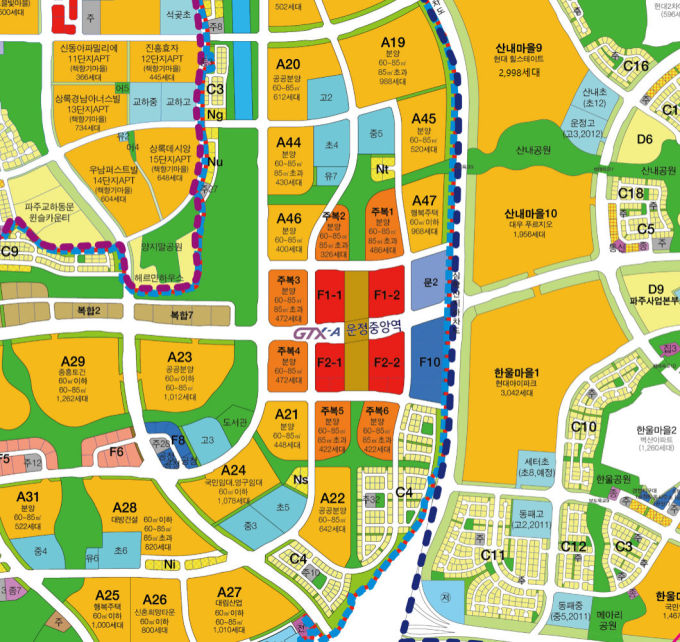 운정중앙역 일대 블록별 위치도. [사진=LH] atbodo@newspim.com