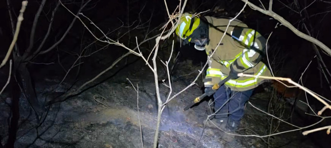 [의성=뉴스핌] 남효선 기자 = 10일 오후 9시, 주불 진화가 완료된 경북 의성군 의성읍 비봉리 '의성 산불' 현장에서 경북소방 산불진화대원들이 칠흑 같은 어둠 속에서 살을 에는 혹한과 강풍에 맞서 잔불 정리와 재발화 차단에 안간힘을 쏟고 있다. 앞서 이날 오후 3시 15분쯤 비봉리의 한 야산에서 산불이 발생해 발화 3시간 15분 만에 큰 불길이 잡혔다. 경북소방은 대응 2단계를 발령하고 조기 진화와 민가로의 연소 확산 차단에 총력을 쏟았다. 다행히 인명이나 주요시설물 피해는 발생하지 않았다. 2026.01.10 [사진=경북소방 동영상 캡처] nulcheon@newspim.com