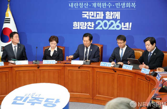 [서울=뉴스핌] 정일구 기자 = 정청래 더불어민주당 대표가 12일 오전 서울 여의도 국회에서 열린 최고위원회의를 주재하고 있다. 2026.01.12 mironj19@newspim.com