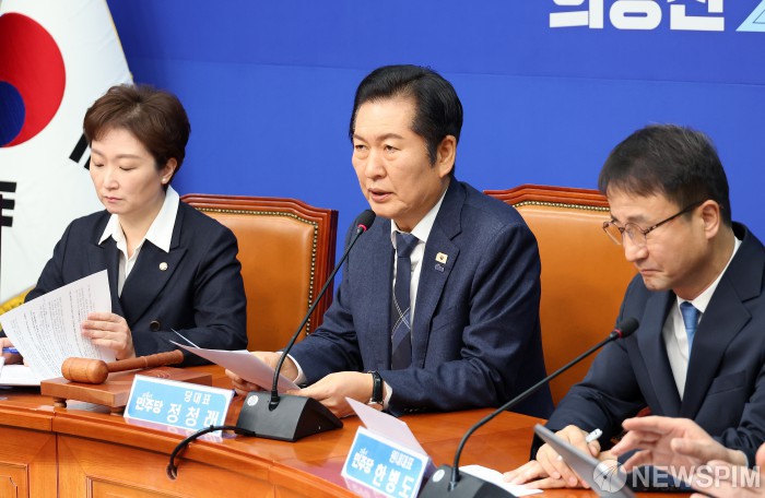 [서울=뉴스핌] 정일구 기자 = 정청래 더불어민주당 대표가 12일 오전 서울 여의도 국회에서 열린 최고위원회의에서 모두발언을 하고 있다. 2026.01.12 mironj19@newspim.com