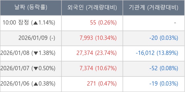 [표] 외국인ㆍ기관 순매매량 (단위 주)