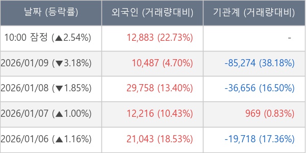 [표] 외국인ㆍ기관 순매매량 (단위 주)