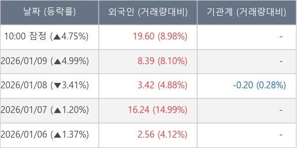 [장중수급포착] 우리로, 외국인 7일 연속 순매수행진... 주가 +4.75%