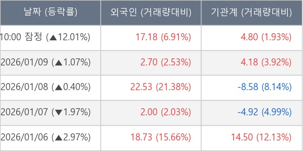 [장중수급포착] 현대건설, 외국인 6일 연속 순매수행진... 주가 +12.01%