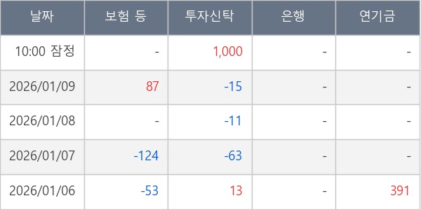 ※ 사모펀드 등 일부 기관의 순매매량은 표시되지 않음
