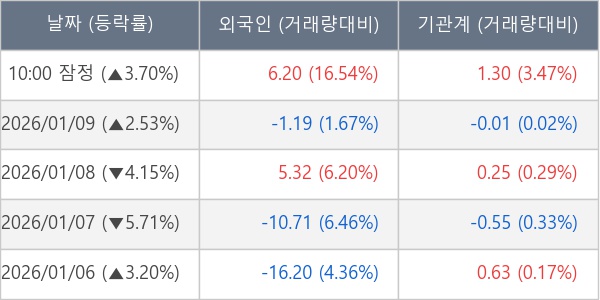 [장중수급포착] 이구산업, 외국인/기관 동시 순매수… 주가 +3.70%
