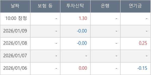 [표] 주요 기관별 순매매량 (단위 만주)