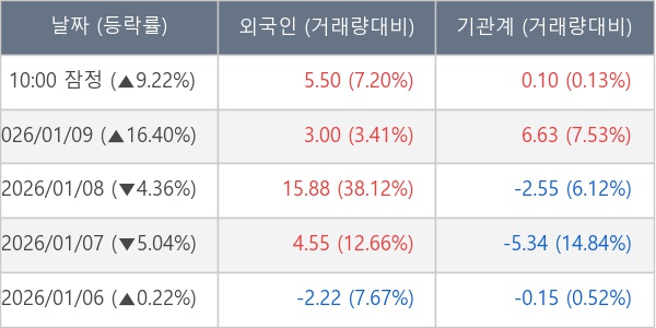 [장중수급포착] 네오티스, 외국인/기관 동시 순매수… 주가 +9.22%