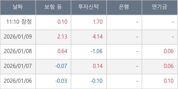[표] 주요 기관별 순매매량 (단위 만주)