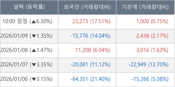 [장중수급포착] LS ELECTRIC, 외국인/기관 동시 순매수… 주가 +6.30%