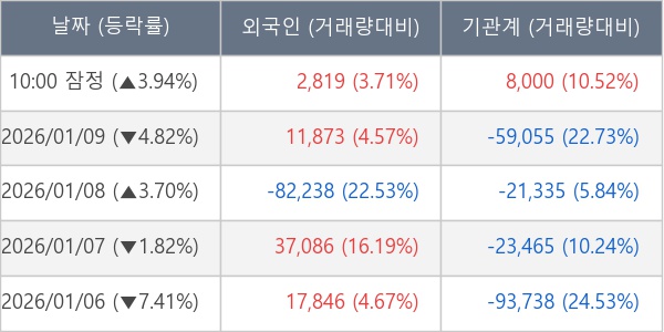 [표] 주요 기관별 순매매량 (단위 주)