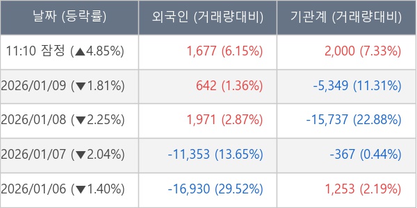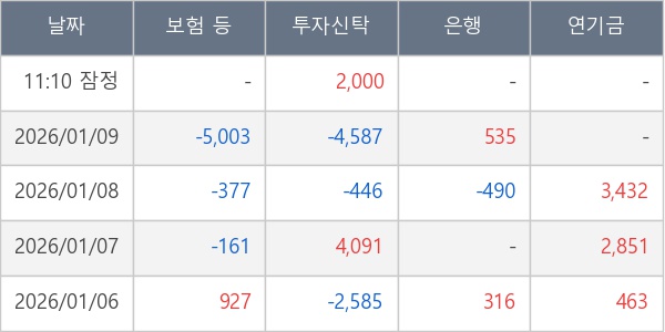 [표] 주요 기관별 순매매량 (단위 주)