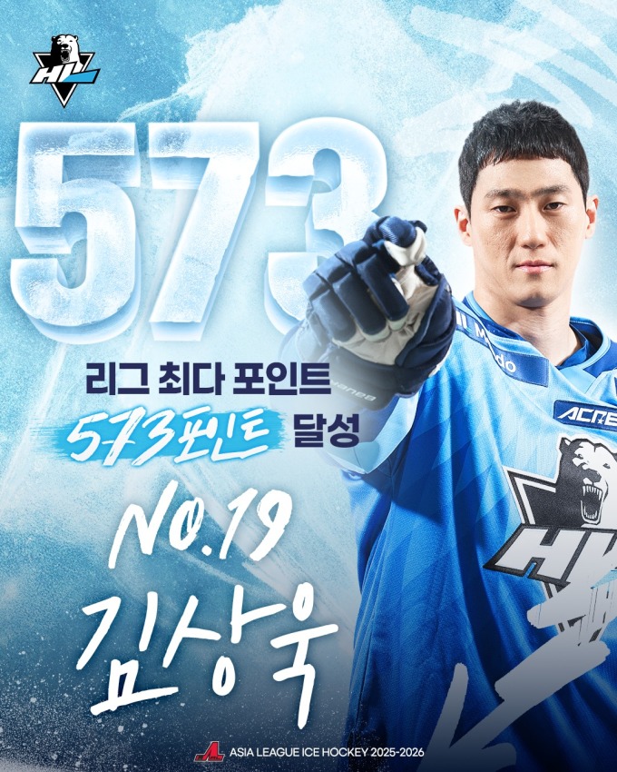 김상욱은 11일 안양 HL 아이스링크에서 열린 2025-2026 아시아리그 28라운드 레드이글스 홋카이도전에서 득점포를 가동하며 통산 573번째 공격 포인트를 찍었다. 이로써 일본 레전드 오바라 다이스케(은퇴·572포인트)를 넘어 아시아리그 최다 기록의 주인공이 됐다.