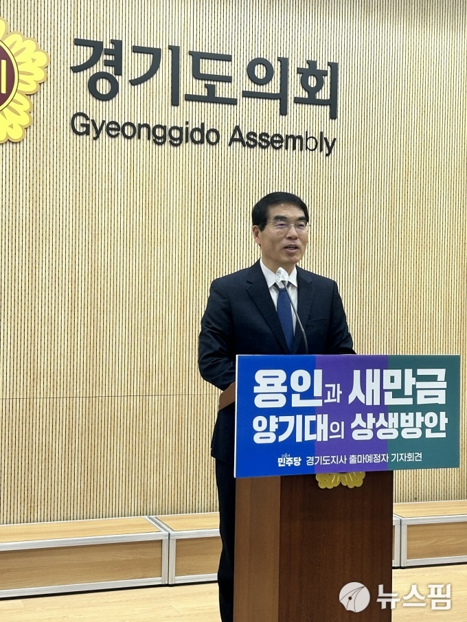 [수원=뉴스핌] 김가현 기자 = 양기대 전 국회의원은 12일 경기도의회에서 기자회견을 열고 용인 반도체 클러스터의 전력 부족 문제를 해결하기 위해 새만금의 재생에너지를 활용하는 '용인-새만금 전력 상생 모델'을 제시했다.