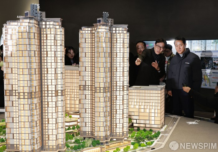 [서울=뉴스핌] 양윤모 기자 = 오세훈 서울시장이 12일 오후 노원구 월계동 광운대역 물류부지 공사현장을 찾아 HDC현대산업개발이 시공중인 'SEOUL ONE' 현장을 시찰을 하고 있다. 40여년 간 물류시설, 시멘트 저장고가 있던 광운대역 일대 15만 6,581㎡에 상업·주거·업무시설, 생활SOC 등을 조성하는 '광운대역 물류부지 개발 사업'은 복합용지 주택 건설을 시작으로 오는 '28년 준공을 목표로 추진된다. 2026.01.12 yym58@newspim.com